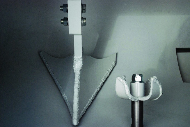 - ploughashare mixing tools in anti-wear steel HB400 and Wolfram Carbide welded coating on tool tips